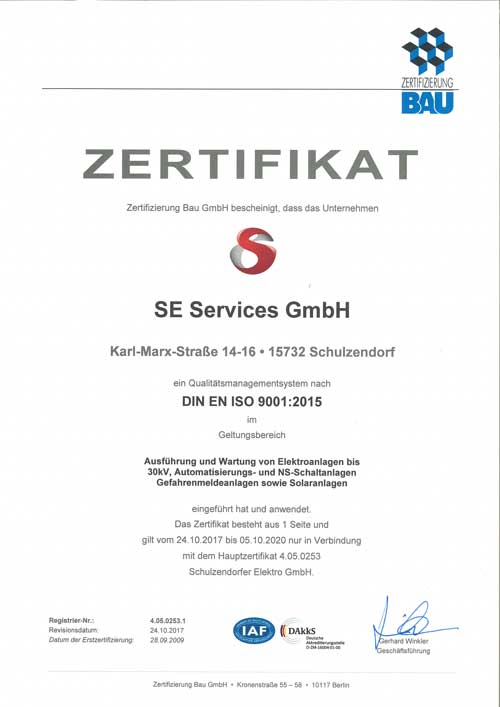 Zertifikat se services Qualitätsmanagement Zertifizierung Bau